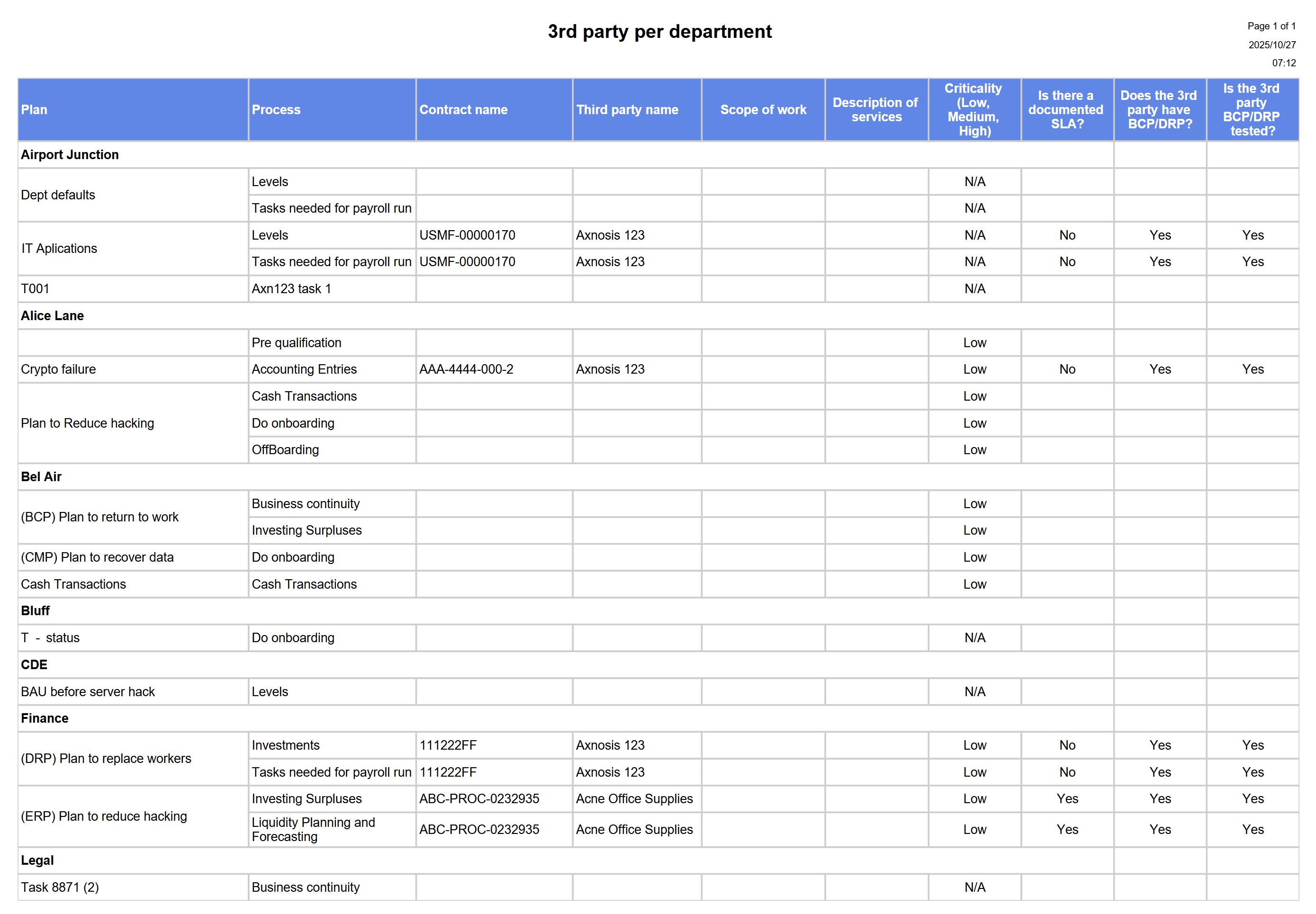 A BCM 3rd Party Vendor refers to a critical service provider whose potential disruption could impact your organization's ability to continue operations, highlighting the need for robust third-party risk management (TPRM) within your overall business continuity management (BCM) program. Key aspects include assessing vendor criticality, evaluating their BCM maturity through contract language and annual reviews, and implementing contingency plans like source code escrow to mitigate risks associated with vendor failure.