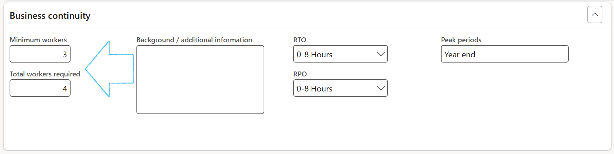 Select the relevant Software application for the department, from the dropdown list. (The RTO and RPO fields will be populated as specified on the Software applications setup form)
