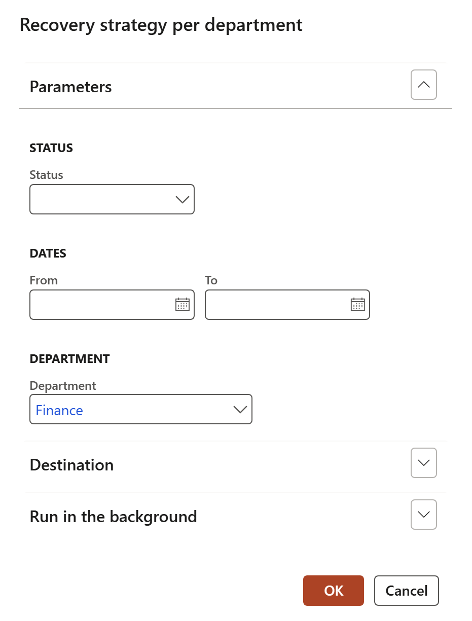 Select the relevant continuity and disaster recovery Type from the dropdown list