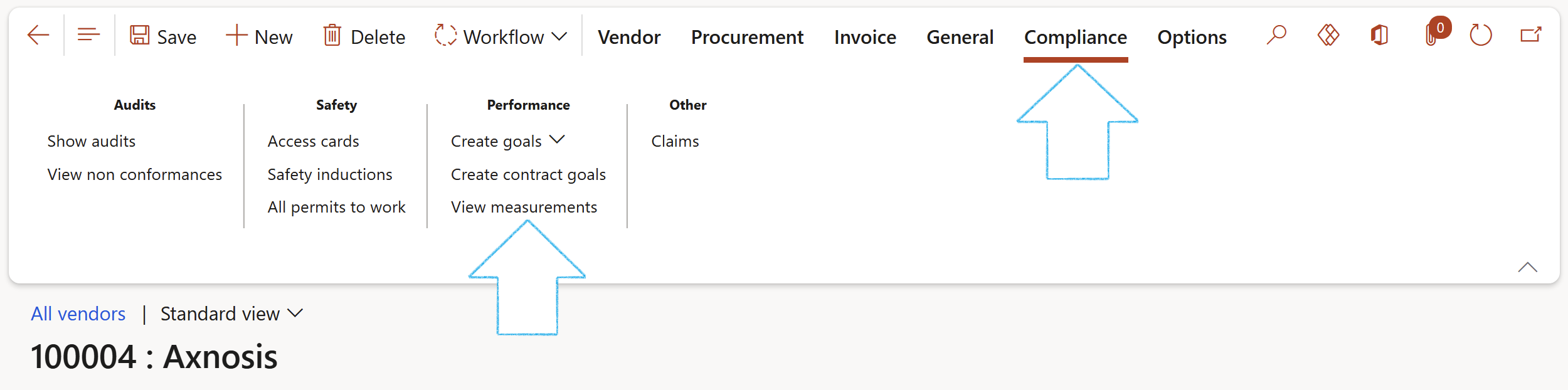 In the Action pane, open the Compliance tab and click on the View measurements button in the Performance Button group