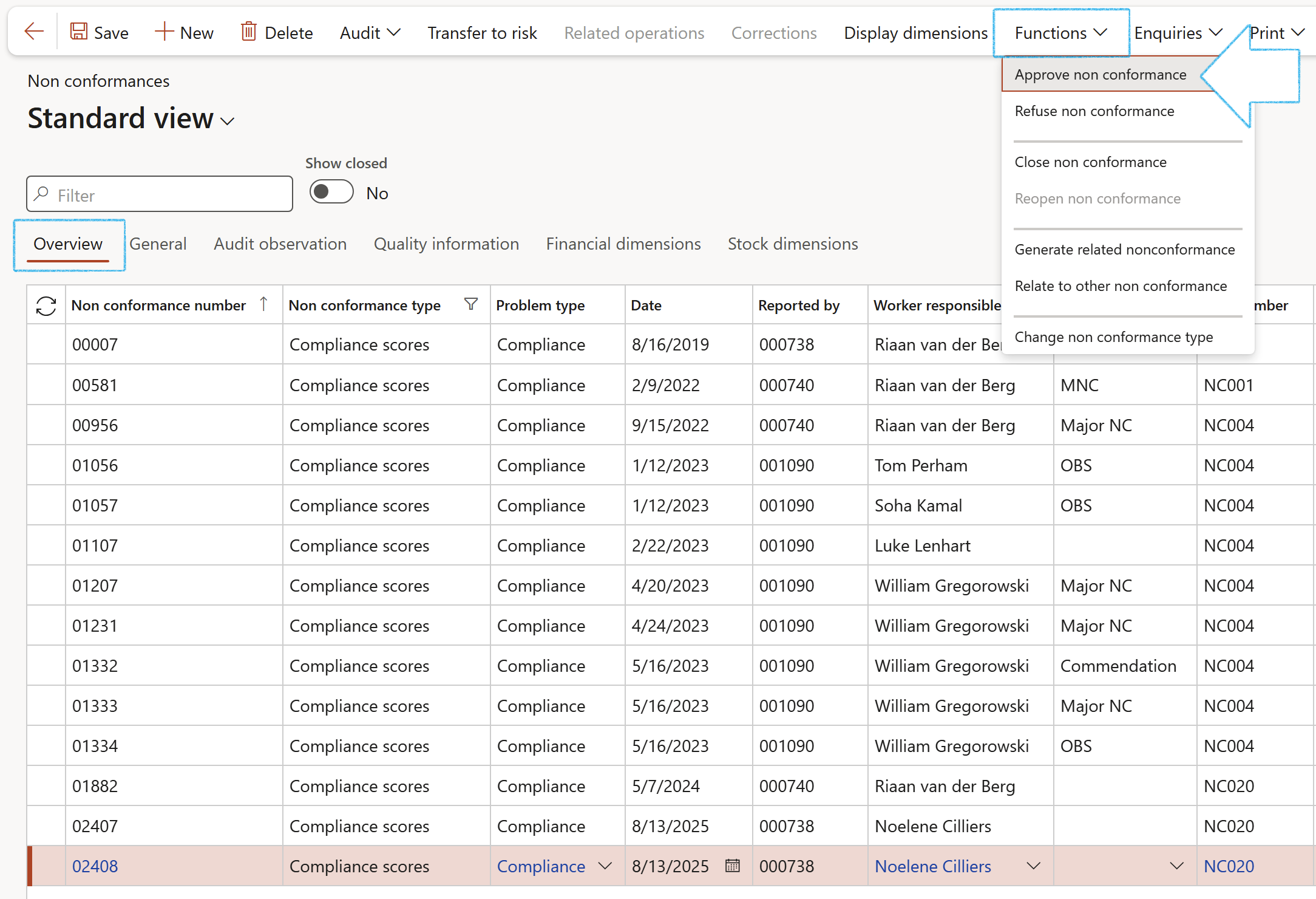 A non conformance is created be default as a reportable finding. If satisfactory reasons are given and the NC is cleared by management, users can also change the status from Reportable to Not reportable.