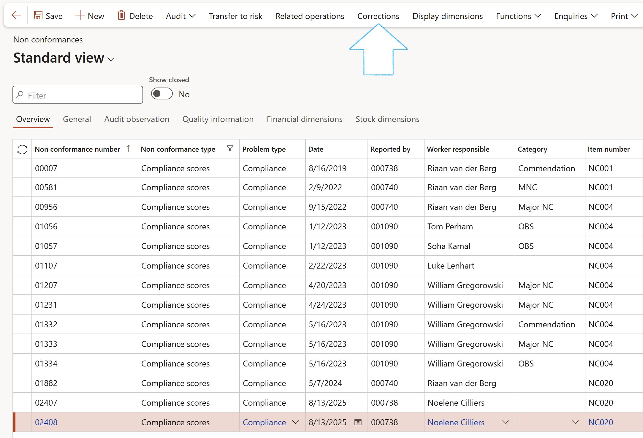 A non conformance means that something went wrong – a problem has occurred and needs to be addressed. Non conformance are addressed with corrective actions. Non conformance (NC) is an ISO 9000 audit designation indicative of a quality issue.