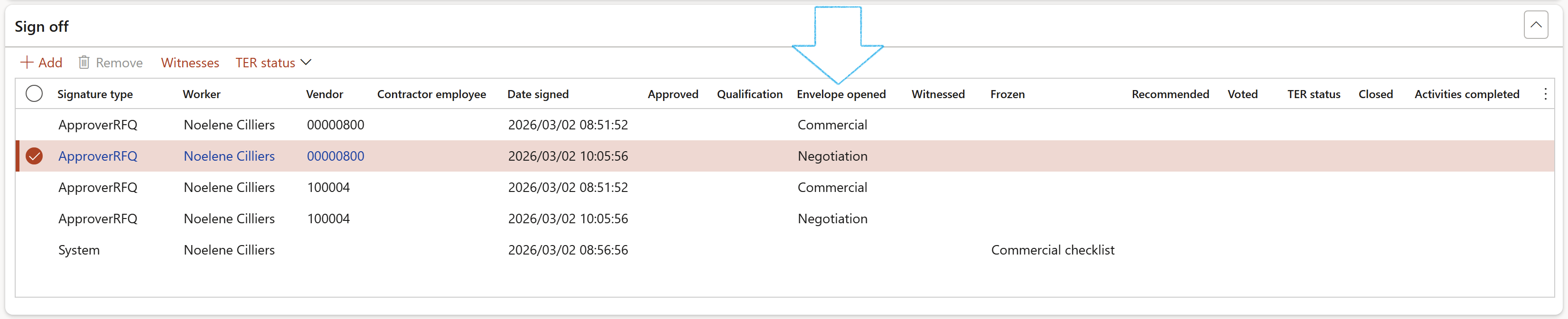 Workers or vendors that winessed the envelope opening can be added under the Sign off Fast tab. Refer to Step 6 under Daily use - Single envelope opening