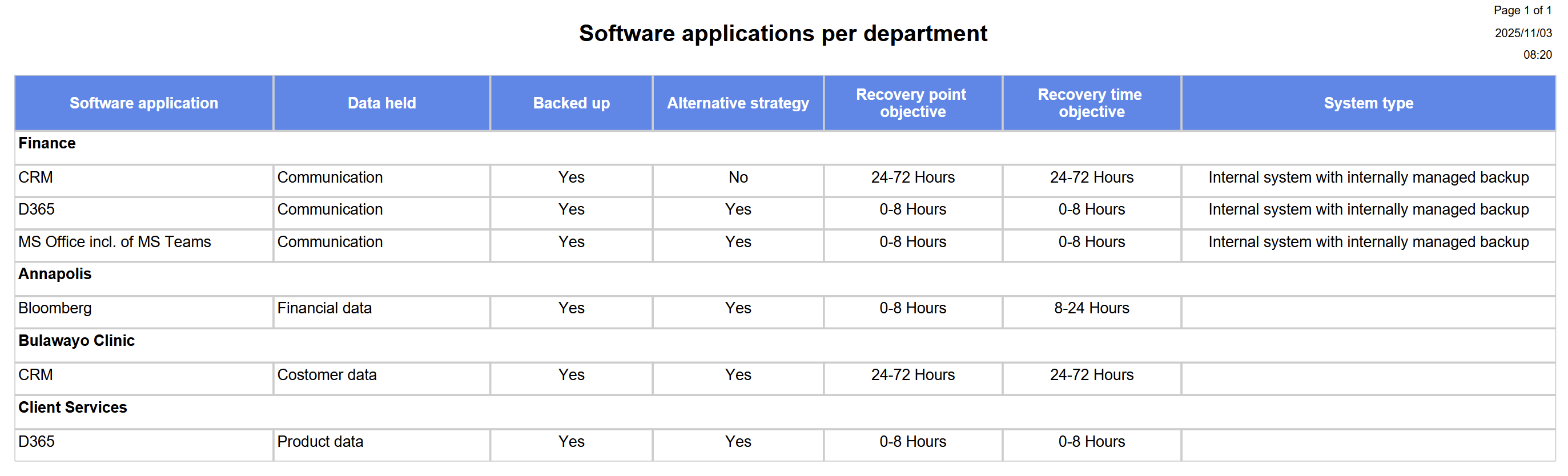 After Hazards have been identified and recorded, and controls have been put in place to mitigate the possible realization of a hazard, users can view the listed hazards per category. This report will also flag if less than two controls are in place.