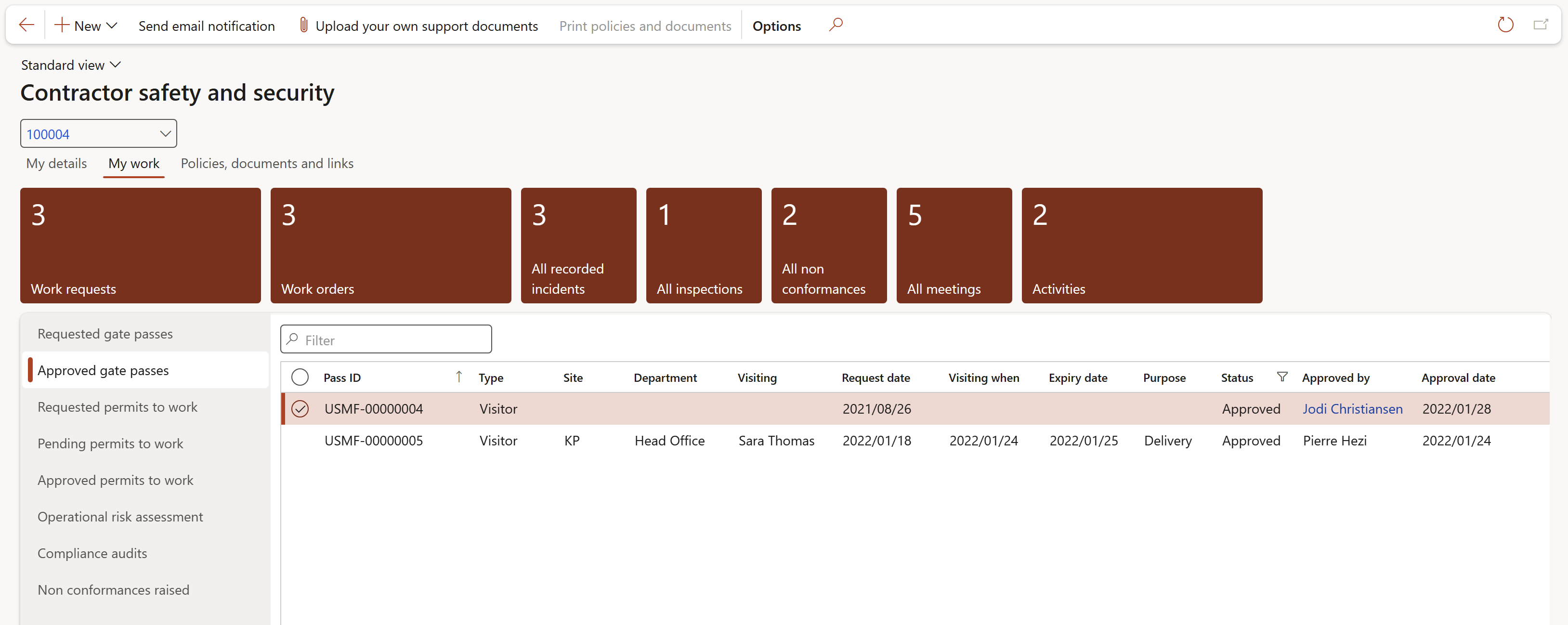 Permits to work requested by me: Displays all recorded permits to work requested by the logged in user