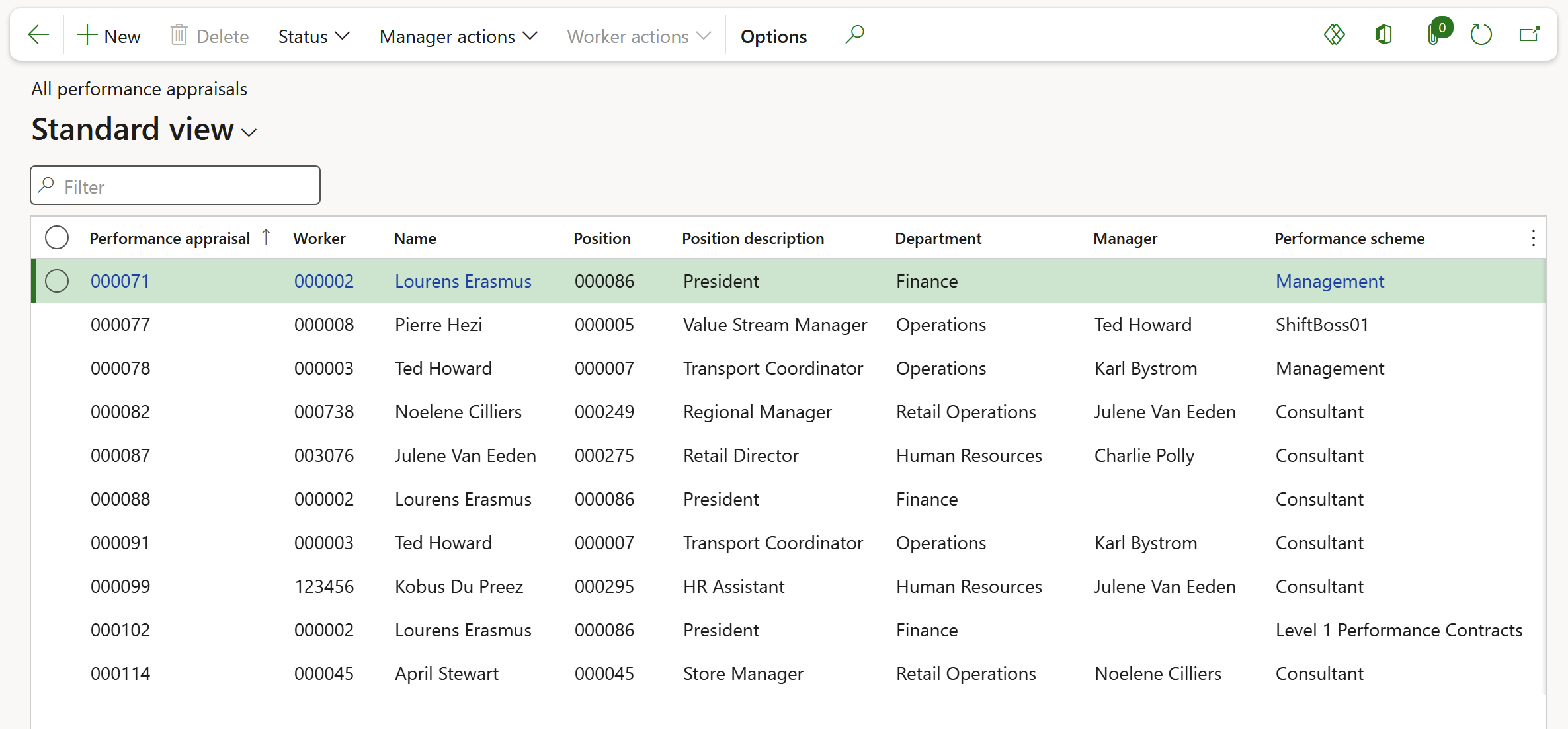 Go to: Human resources > Performance > All performance appraisals