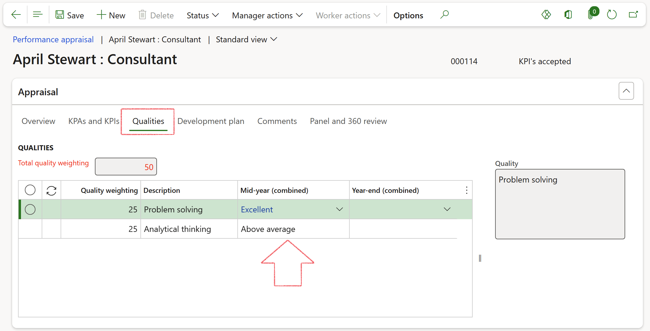Enter a value in the KPA weighting field