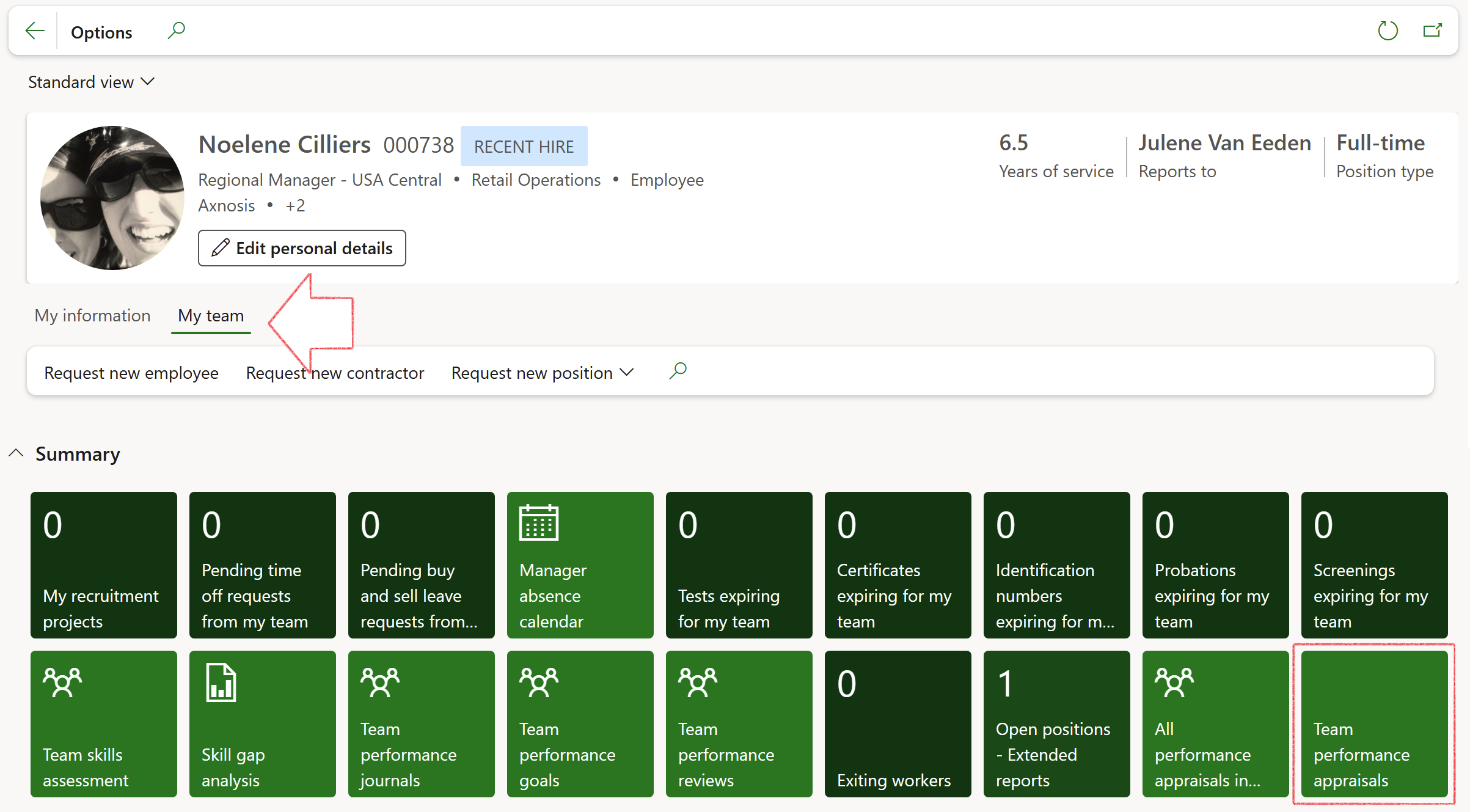 Click on the All performance appraisals in my department tile