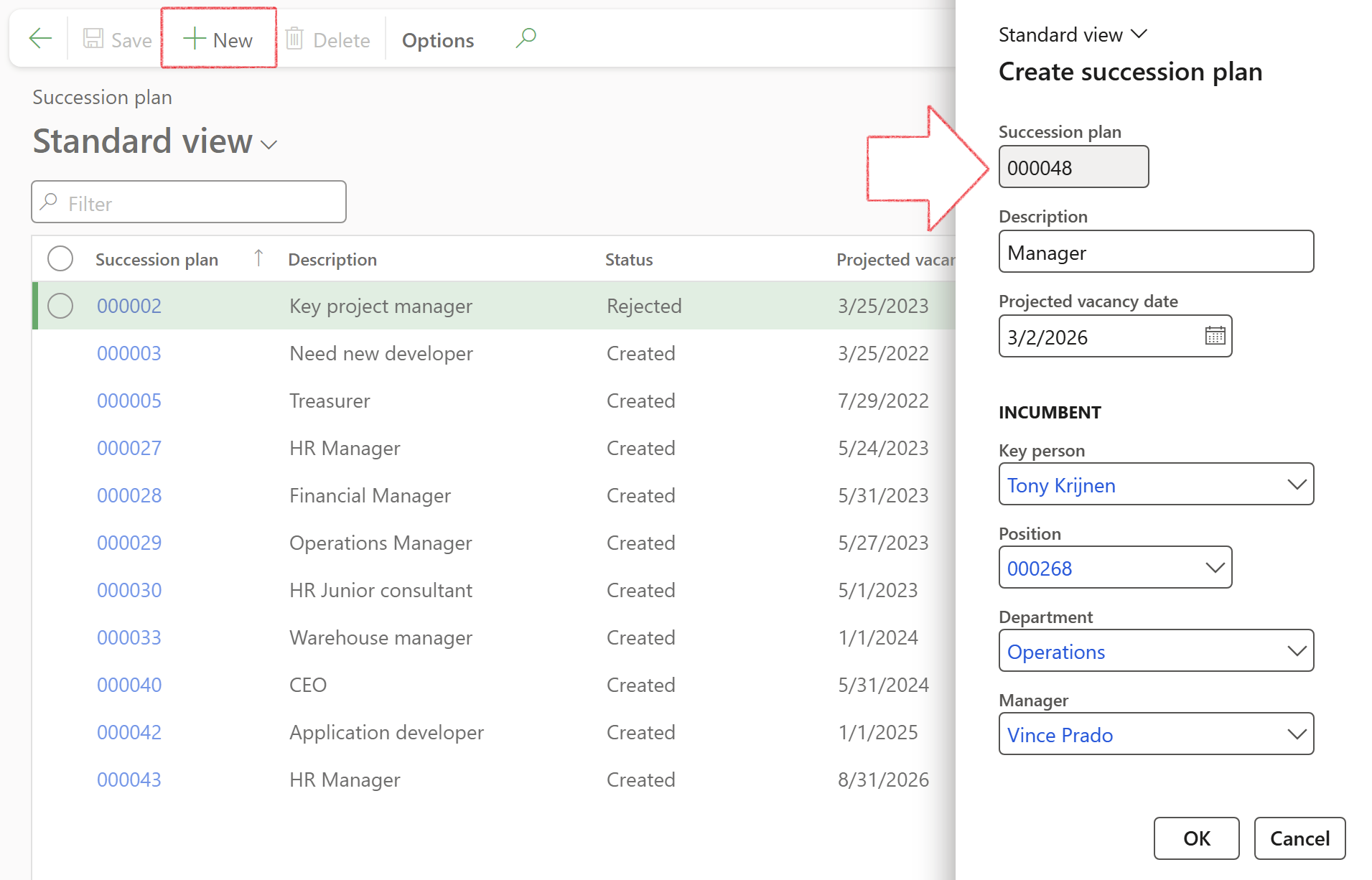 In the Succession plan candidates field a unique ID for the record in the datatbase will be shown
