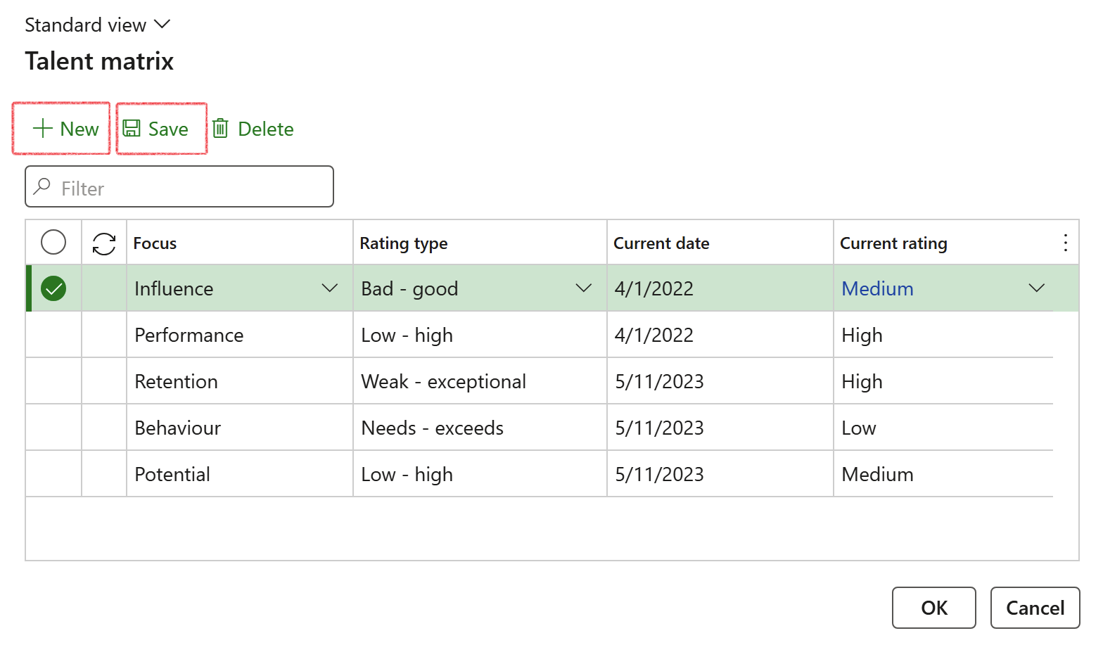 Before analysing the data to identify the best candidate, review the talent matrix assigned to each candidate to ensure a comparison is possible and to review the ratings of each candidate.