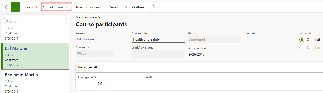 Go to: Human resources > Courses > Participant