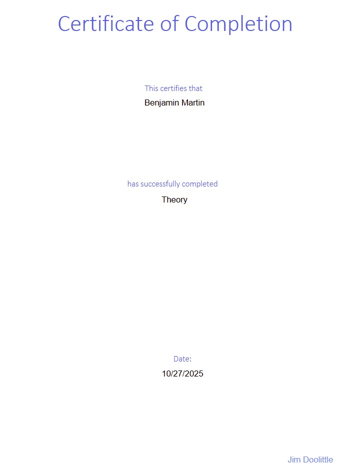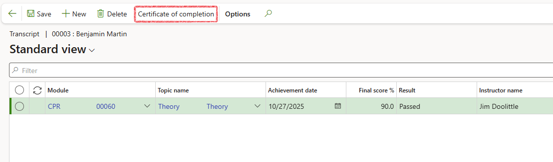 If the final result captured for a worker is Passed, then a Certificate of completion may be generated