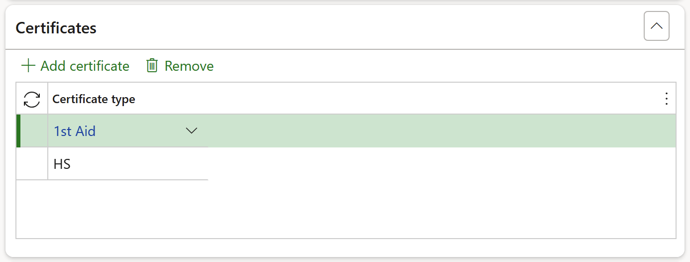 Expand the Certificates Fast tab to add certificate types if relevant