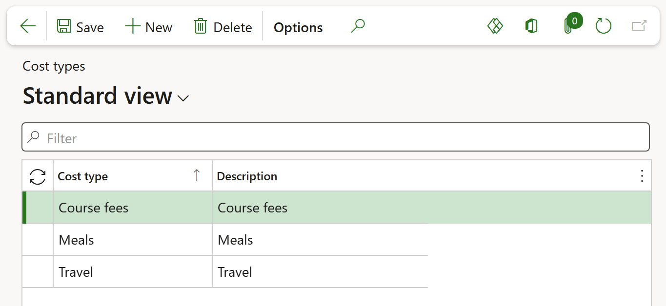 Click on New to add cost items for the course