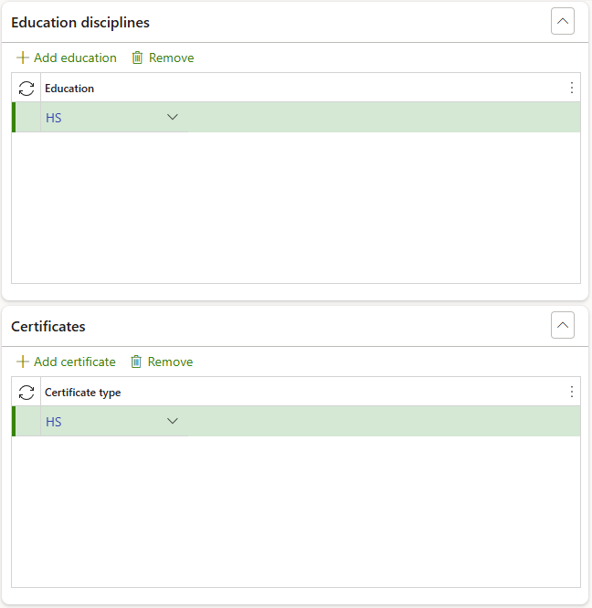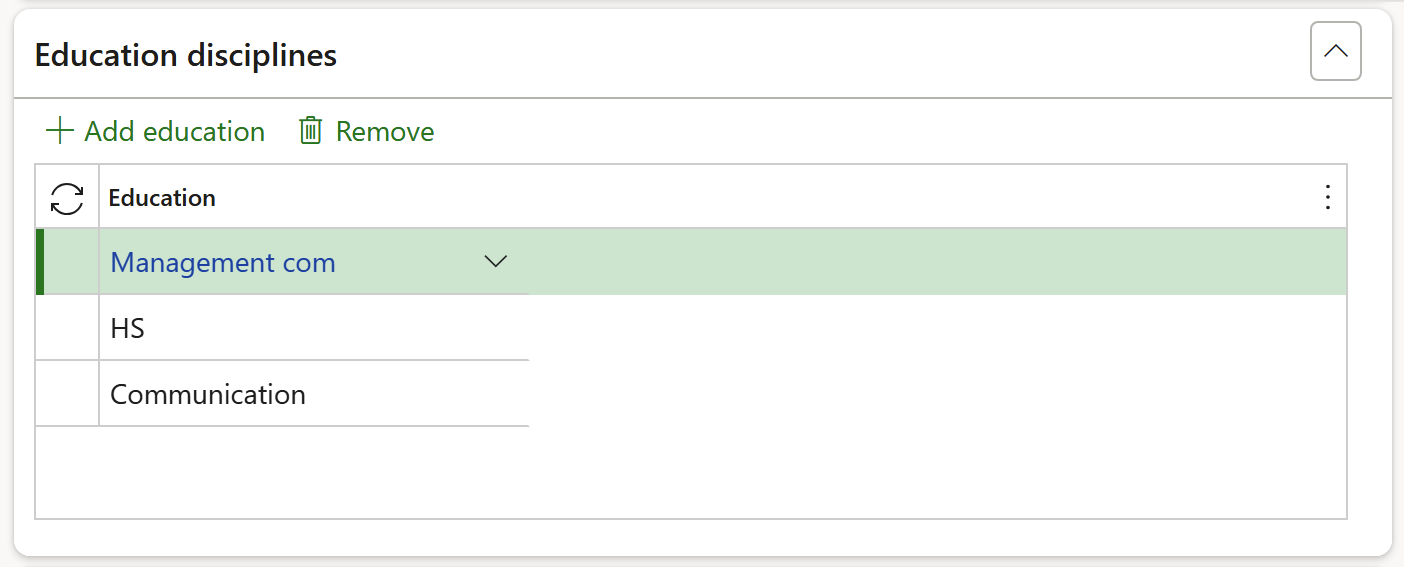 Expand the Education disciplines Fast tab to add education items if relevant
