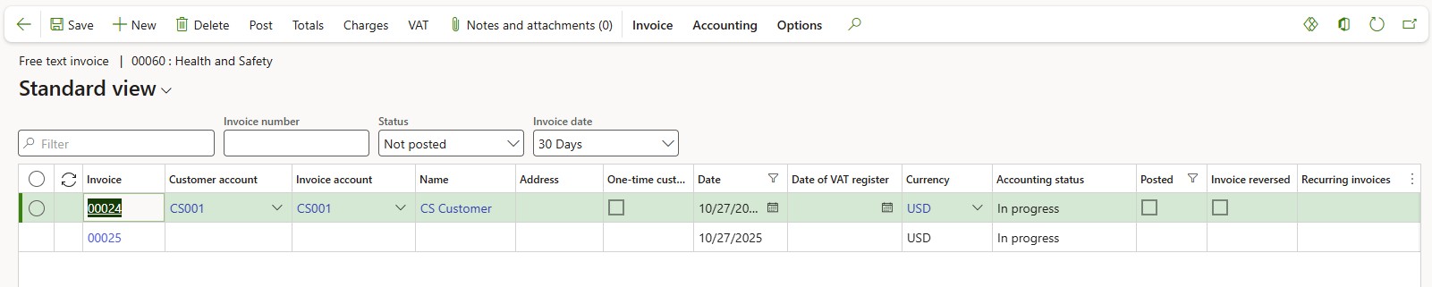 Select the Free text invoice template if applicable