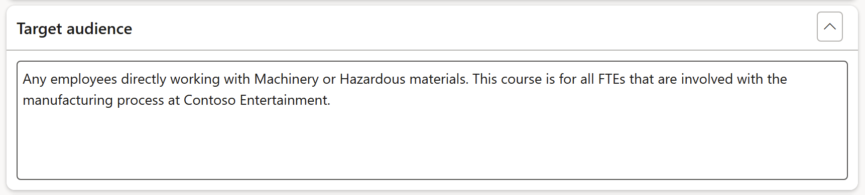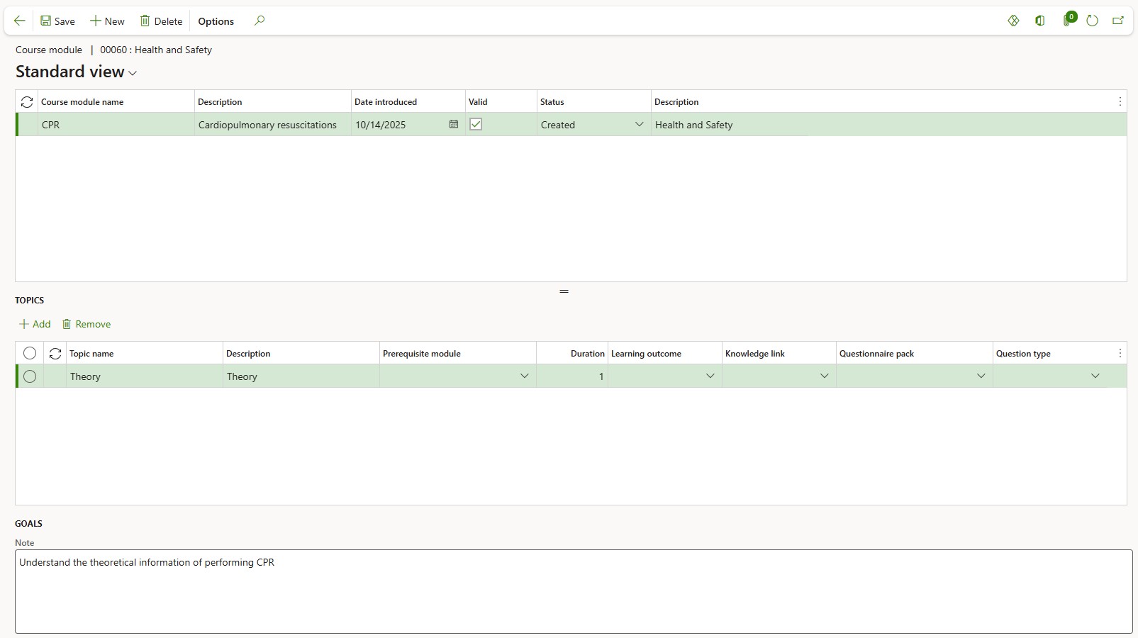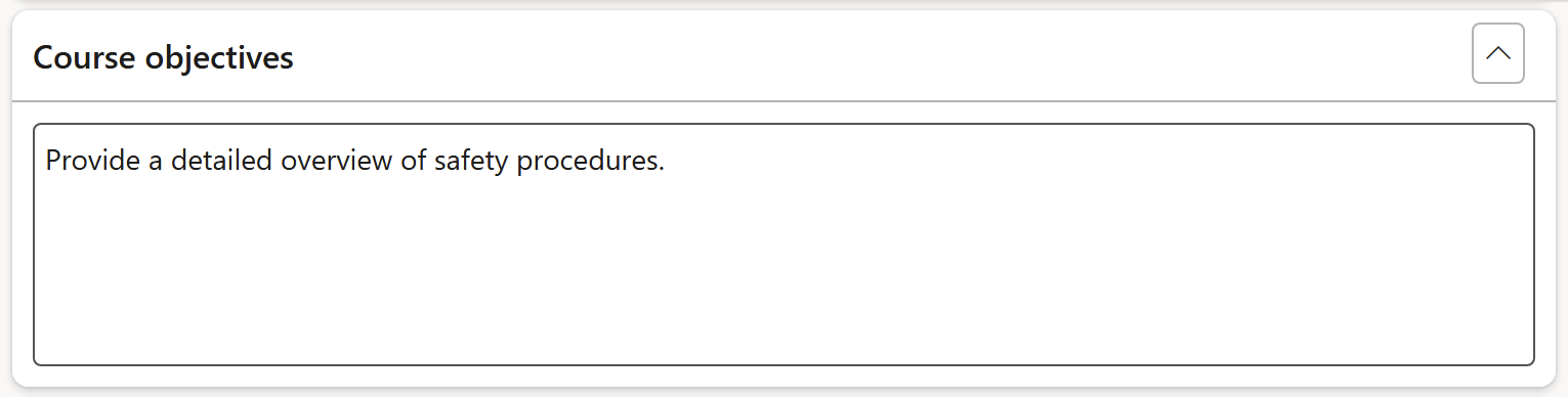 Expand the Course objectives Fast tab and enter the relevant information in the memo box