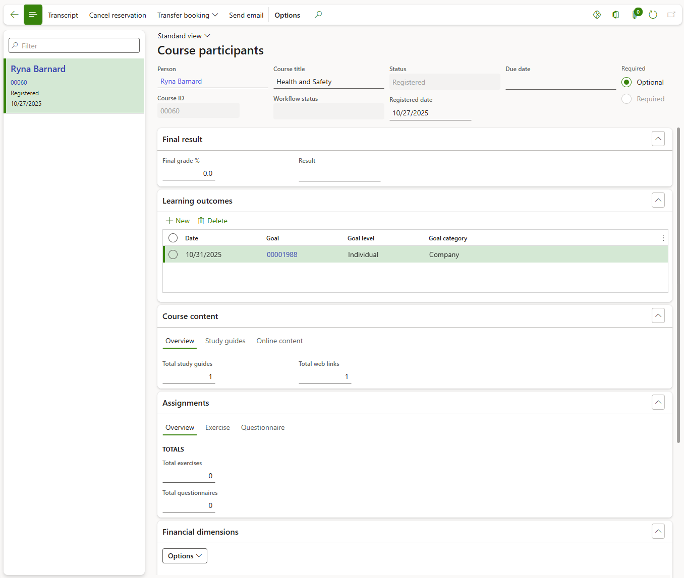 Add Financial dimensions to the course if applicable