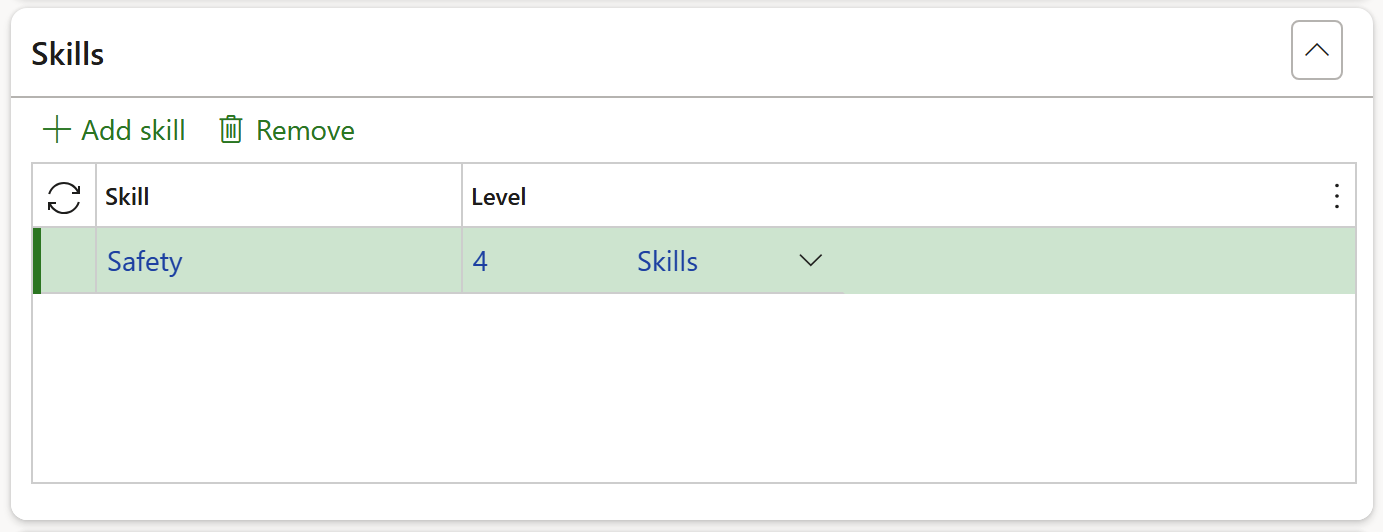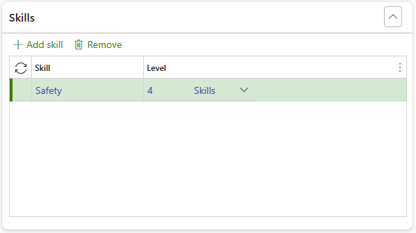 Click on the Add skill button to add a new line to the grid