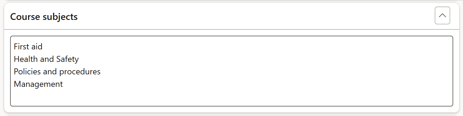 Expand the Course subjects Fast tab and enter the course subjects in the memo box