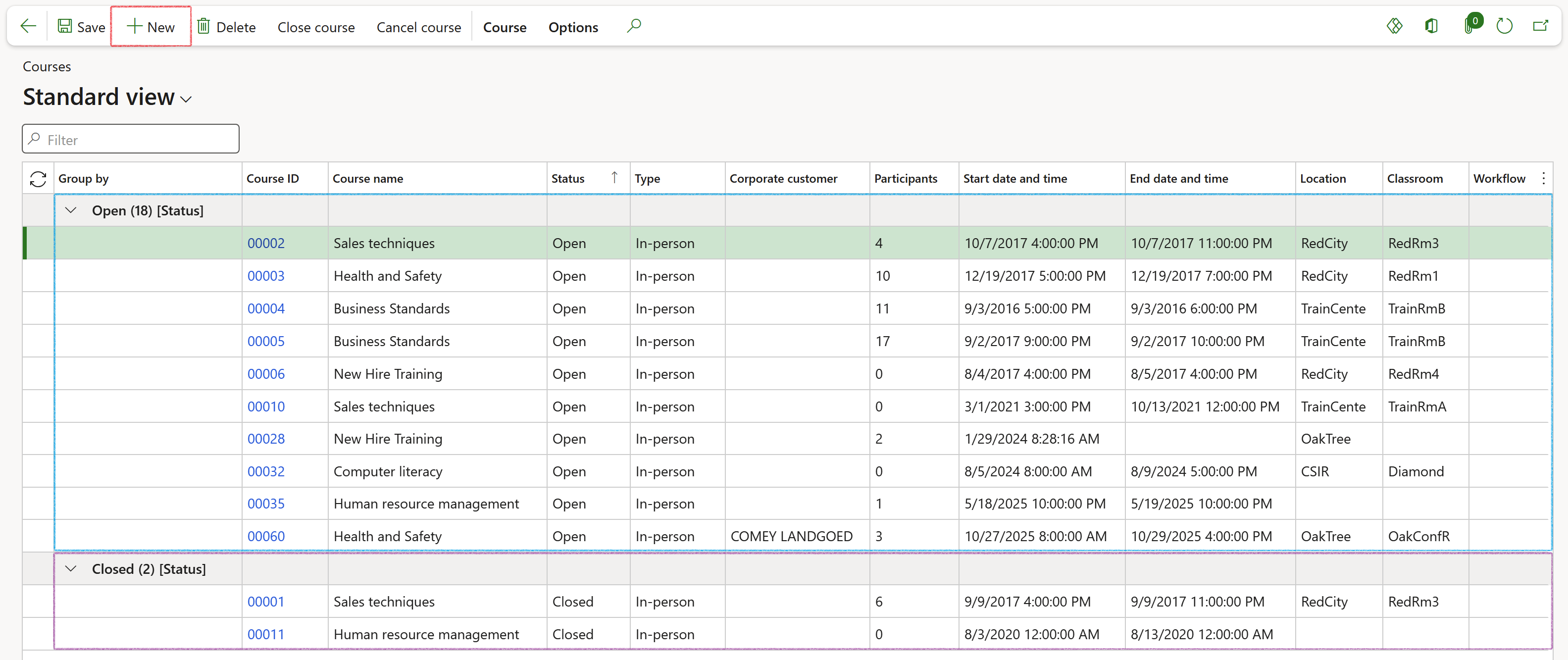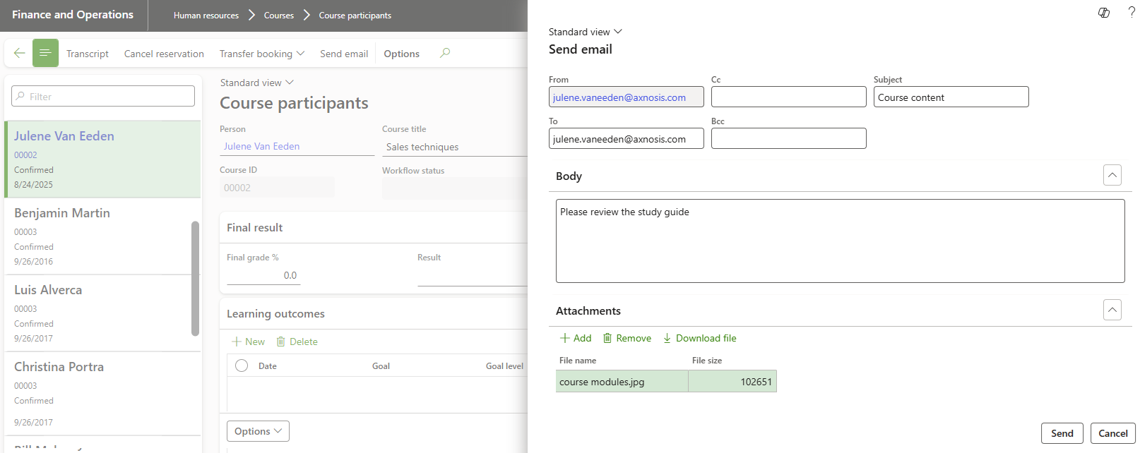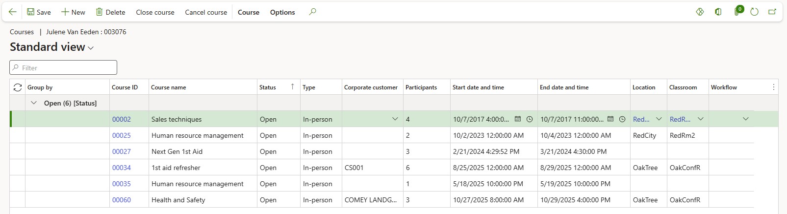 Go to: Human resources > Courses > Course participants