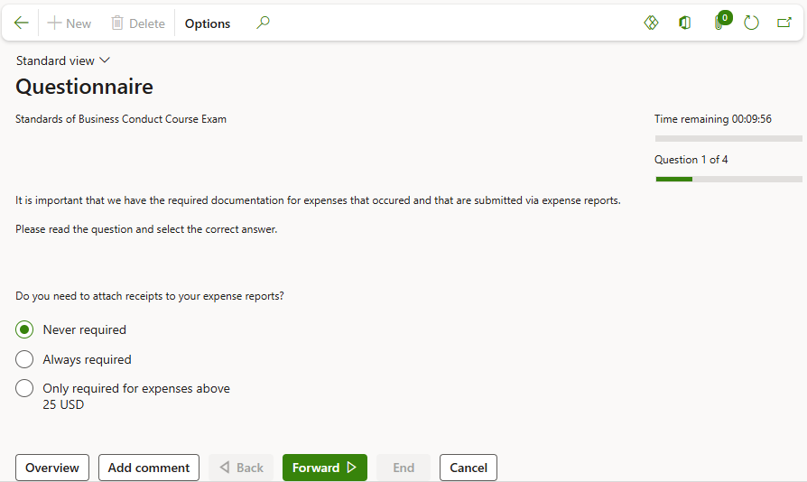 If any questionnaires have been assigned and scheduled for the course of course modules, the Exercises and Questionnaires will be accessible from the Assignments Fast tab.