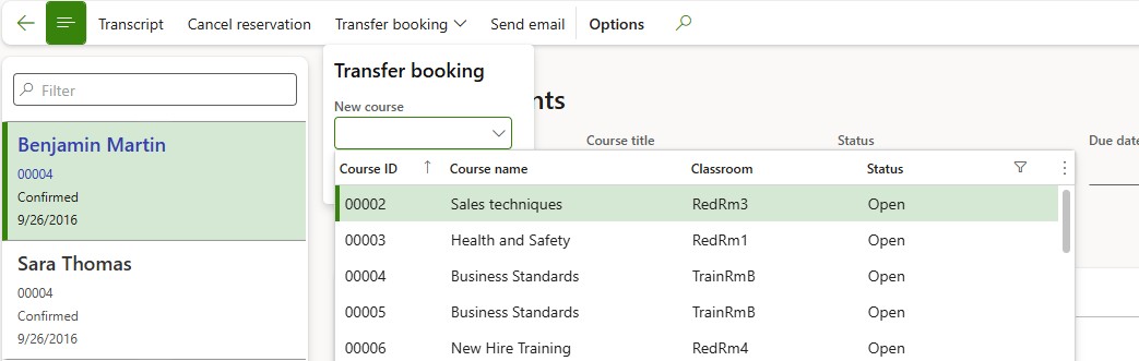 Filter for and select the appropriate participant for the correct course from the list:
