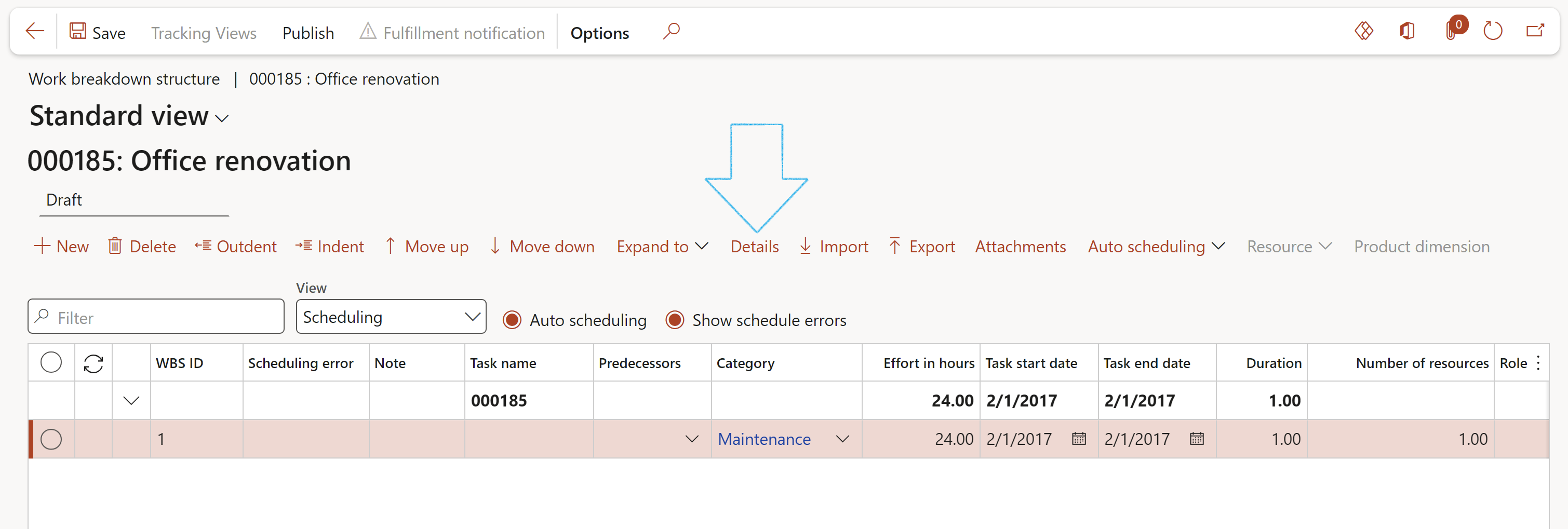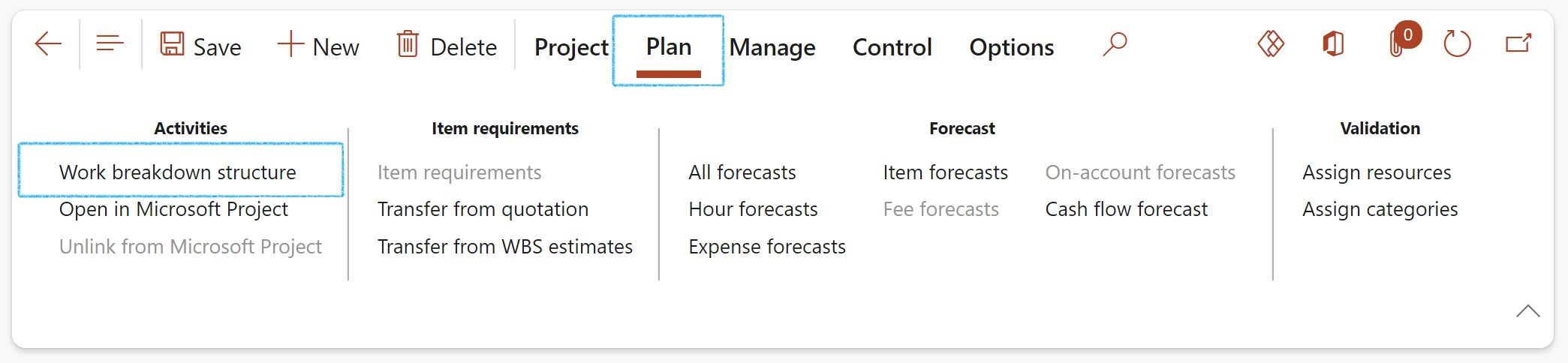 On the Action pane, under the Plan tab, click on the Work breakdown structure button in the Activities button group